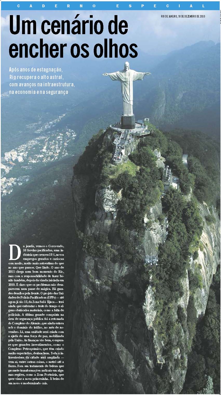 Hoje saiu um caderno especial no jornal O Globo com o seguinte título: “Rio virtuoso. Um cenário de encher os olhos. Após anos de estagnação, Rio recupera o alto astral com avanços na infraestrutura, na economia e na segurança.